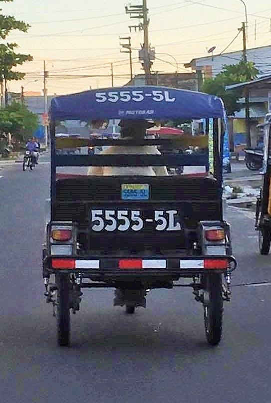 Do you see them? Five fives!! Actually, if you count the license plate and the two places on the motocarro where the number is painted, it’s three sets of five fives!!