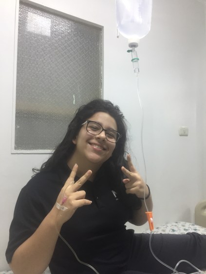 She is an amazing girl. She was laughing and joking up until they wheeled her into surgery. As you can see: