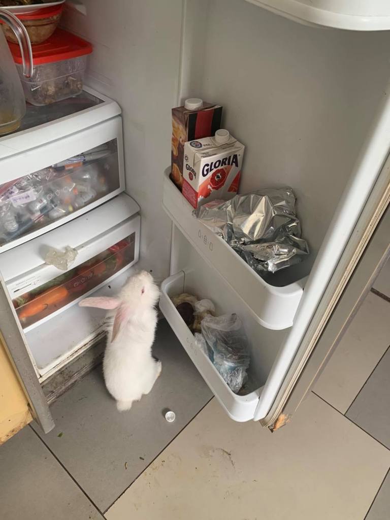 With this, Ester explained why she gave a morsel of her food to our bunny, Moon. Moon has quite stolen our hearts since she became part of our household in March. To give you an idea of just how much this is the case, I’ll share this with you: I, too, have stooped to feeding her bits of veggies from the table. How can I not, when she puts her soft little paws on my leg and looks up at me with such expectant eyes?